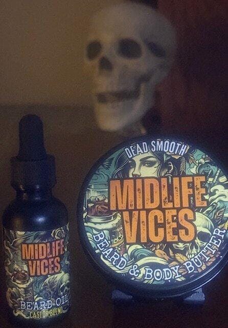 Another great oil / whipped butter product from Dead Smooth that combines an excellent feel in beard experience with a sophisticated and sensual scent profile. Midlife Vices elegantly blends dry spice, boozy warmth, and creamy woods. Black tea is a dry, earthy, and slightly smoky scent that I absolutely love in a beard oil and feel that it is under utilized. Paired with the aromatic, peppery spice of cardamom and you have one attention grabbing opening! Warm and inviting bourbon bring a sweet complexity with subtle hints of vanilla - caramel, and woody - smoky notes. The star of the show is the creamy smooth sandalwood base shining throughout the profile and lingering for hours! Finally, tonka brings additional notes of almond - vanilla sweetness, anchoring the blend and enhancing the profile's longevity. Terri and I are loving everything Katie is doing!
